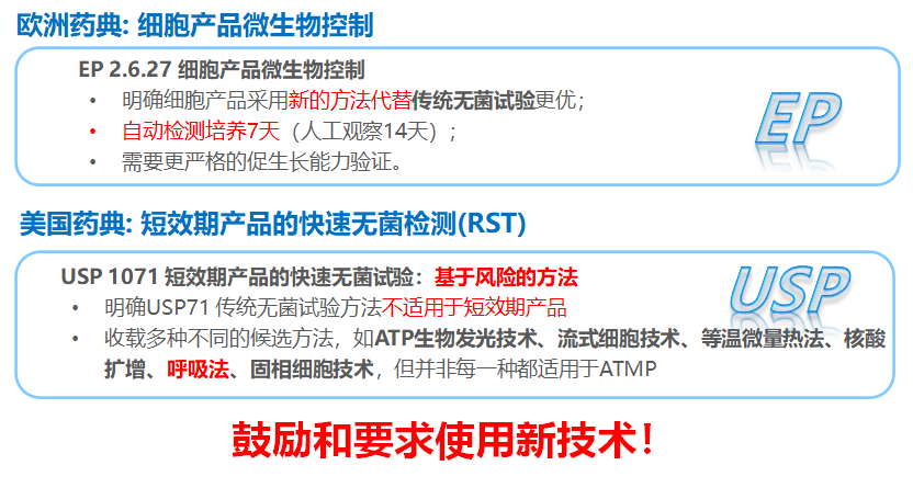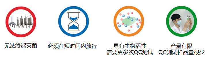 與傳統(tǒng)藥物相比前沿治療藥物(ATMP)在研發(fā)及生產(chǎn)過程中的產(chǎn)品質(zhì)量控制面臨諸多挑戰(zhàn),例如無法終端滅菌、傳統(tǒng)藥典中無菌檢查方法檢測周期長、具有生物活性需要多次QC測試、產(chǎn)量有限QC測試樣品量少等。