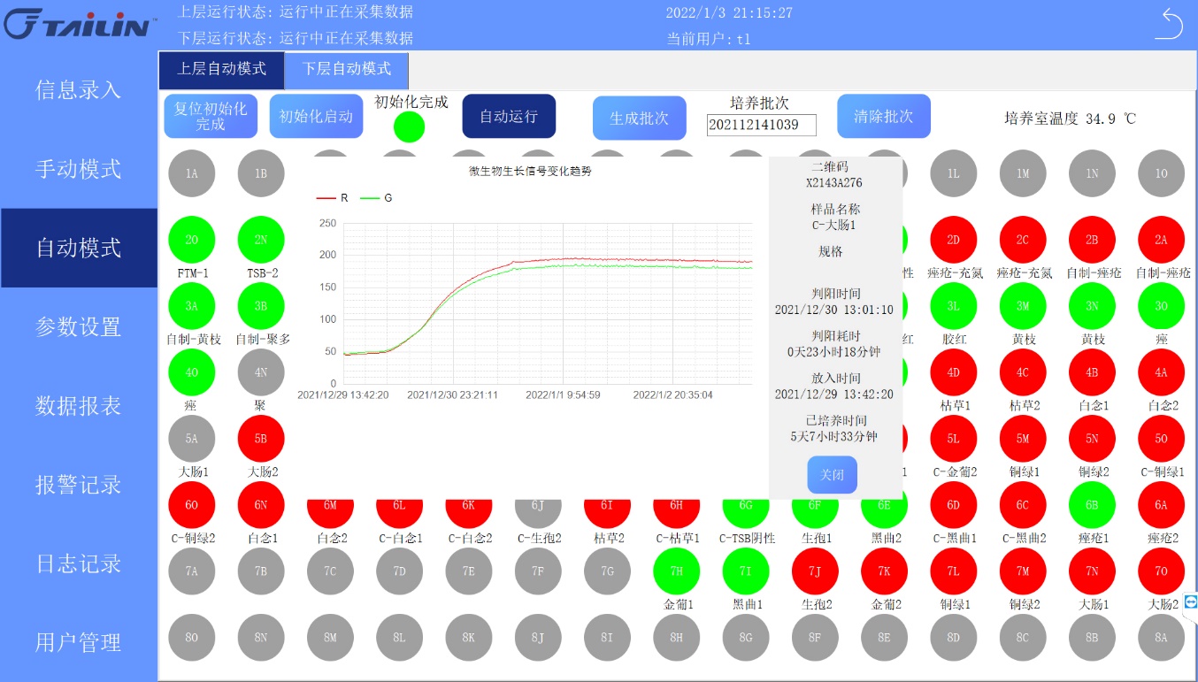 報告中指出,十三五國家重大科技專項成果全自動無菌培養(yǎng)系統(tǒng)AST-300和AST-80是專用于藥品快速無菌檢查的智能化儀器,由恒溫培養(yǎng)箱體,自動化檢測單元、培養(yǎng)容器、微生物生長信號感應器等組成。其原理是基于微生物呼吸作用產(chǎn)生的CO?,引起培養(yǎng)容器上感應器顏色的改變,通過設備的視覺相機連續(xù)掃碼感應器圖像及對應二維碼,由計算機系統(tǒng)進行視覺分析并轉(zhuǎn)換為生長信號,根據(jù)變化趨勢分析及專用的算法來判斷無菌檢查結果。