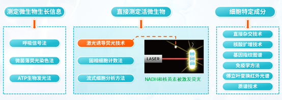 為克服傳統(tǒng)微生物檢測方法的局限,滿足快速放行的需求,微生物快檢技術(shù)應(yīng)運而生??鞕z技術(shù)分為三類:測定微生物生長信息、直接測定活微生物、測定細(xì)胞特定成分。其中,激光誘導(dǎo)熒光技術(shù)作為一種無損檢測技術(shù),在水質(zhì)檢測中尤為重要,為傳統(tǒng)檢測方法帶來革命性的改變。